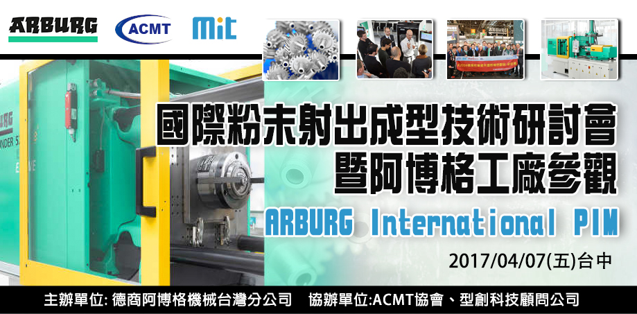 本次台灣阿博格〈ARBURG〉將帶領客戶至台灣分公司參觀「MIM製程技術 」,藉由專業研討及參觀,一同探討MIM先進技術、提昇產能,本活動客戶全程免費參加並提供接駁車服務,名額有限敬請儘速報名。