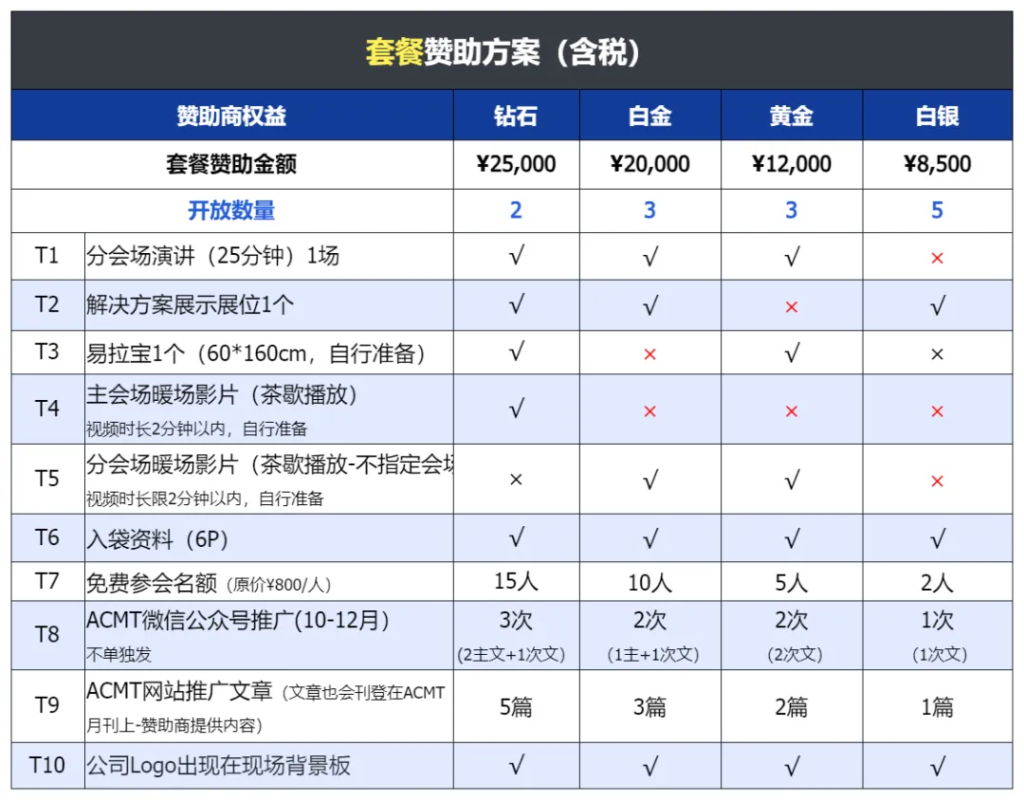 • 活动方案:每位RMB¥800元(包含会议费用、午餐/茶点费用,携伴另有优惠)