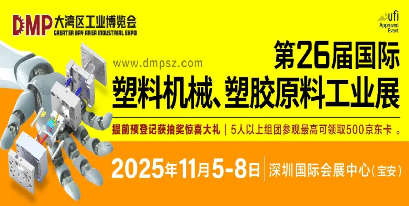 「11月5-8日,深圳國際會展中心(寶安新館),DMP塑膠機械展就等你!現在掃碼預登記,不僅能鎖定『早鳥權益』,還能優先對接展商資源——別等2026年同行搶佔先機,你才後悔沒來看!」