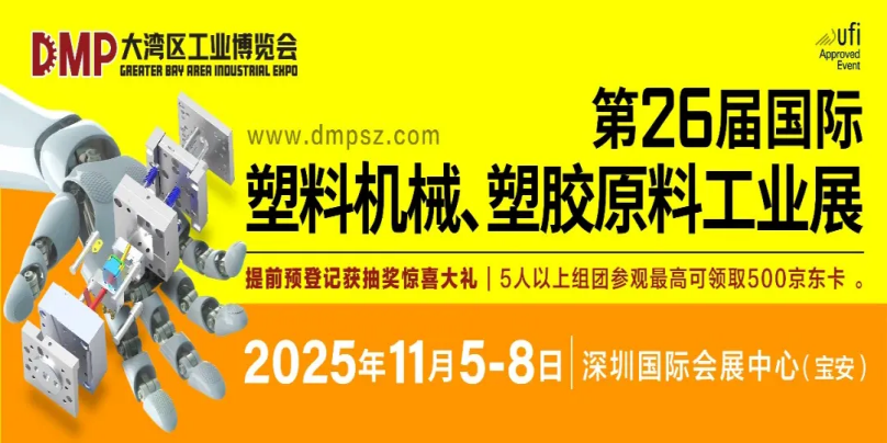 「11月5-8日,深圳國際會展中心(寶安新館),DMP塑膠機械展就等你!現在掃碼預登記,不僅能鎖定『早鳥權益』,還能優先對接展商資源——別等2026年同行搶佔先機,你才後悔沒來看!」